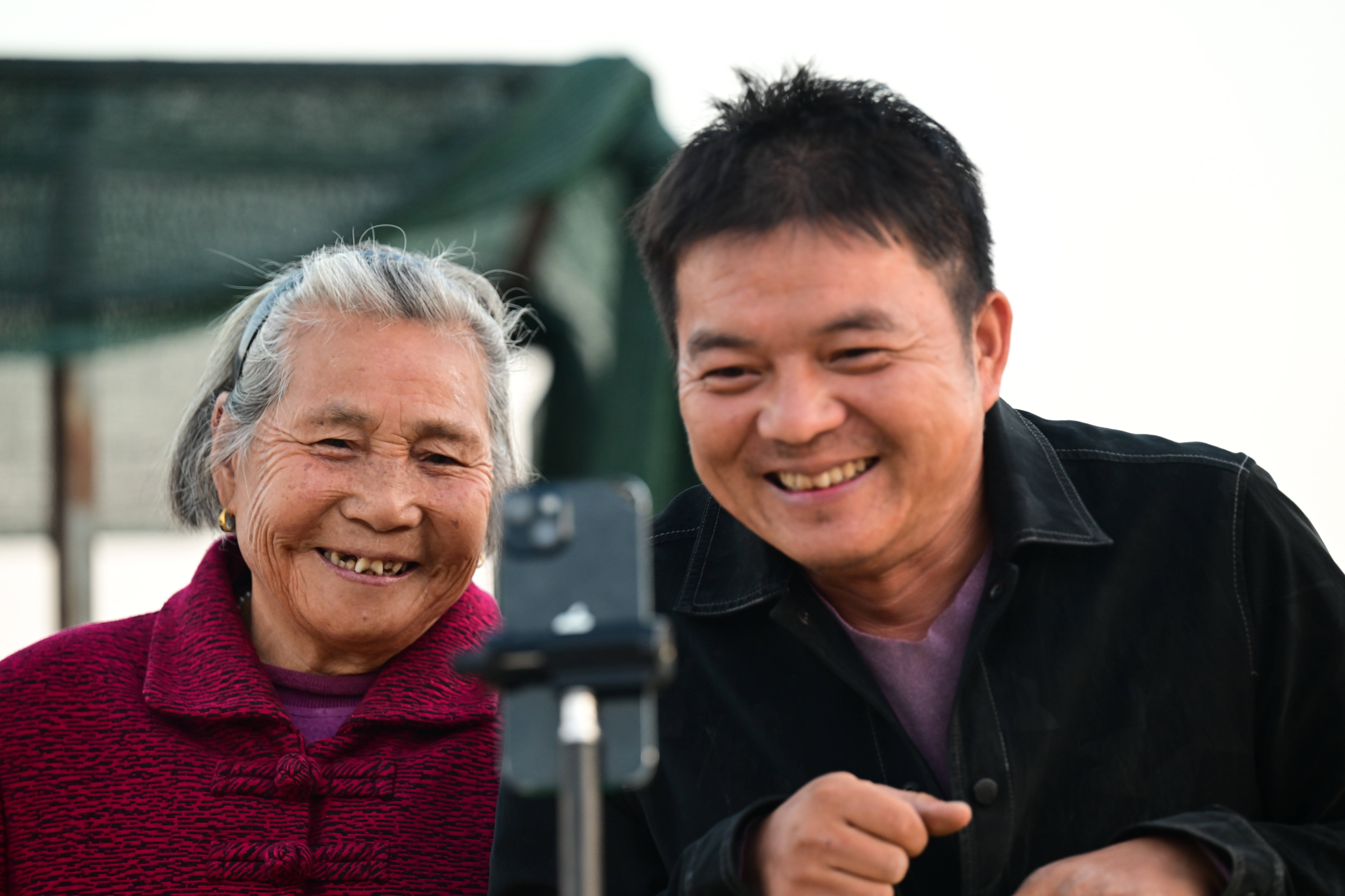 王甜甜(左)和戴淑英一起拍摄短视频。起初王甜甜发短视频