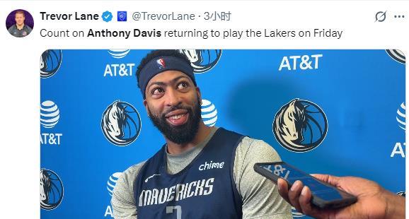 浓眉的言论引热议,湖人记者Trevor Lane表示,预计浓眉将在周六对阵湖人的比赛中复出;名记Marc Stein报道称,浓眉有可能复出打湖人。