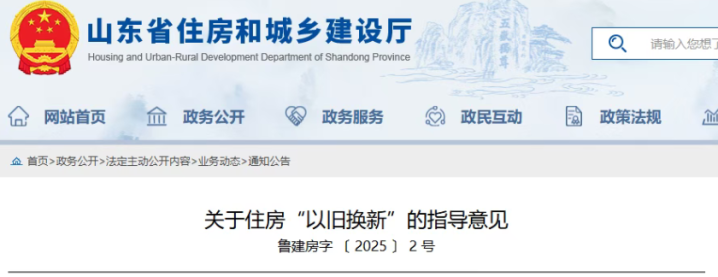 12月12日,山东省住房和城乡建设厅公号发布《关于住房“以旧换新”的指导意见》。以下为全文: